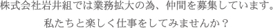 | 給 与 | 日給11,000円~15,000円(能力による) 【月収例250,000円】 |